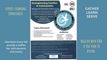 Abundant Grace is a new faith community. Our gatherings arose from a meeting at Jefferson's on November 30, 2022 and a Christmas Communion Service at Sand Mountain Toyota in December. Our launch team formed on January 1, 2023 and invested two years in laying a foundation for an ongoing United Methodist witness for Sand Mountain. Rev. Carol Gullatt was officially appointed by our bishop beginning in July, moving from "Developer" to "Pastor" of the church. On January 9, 2025, we were chartered as a congregation of the United Methodist Church.